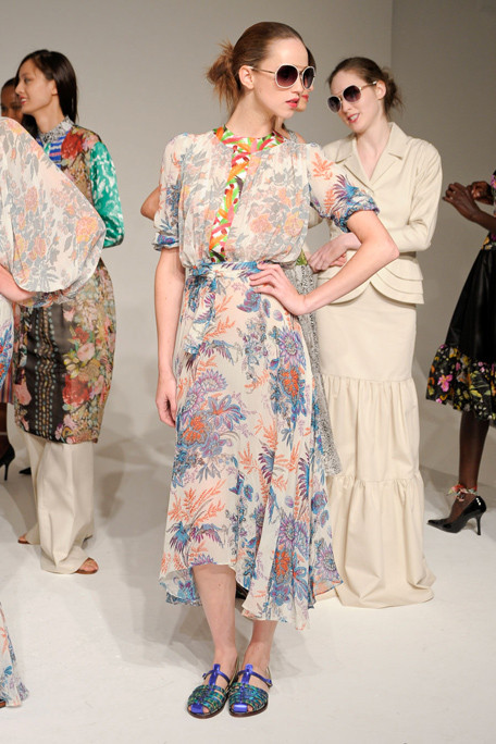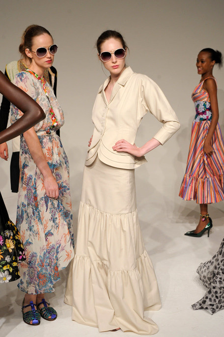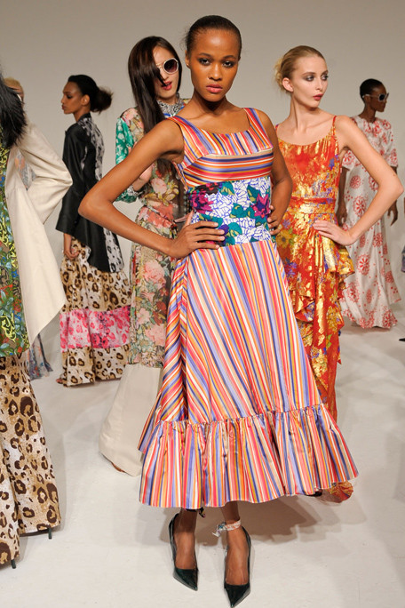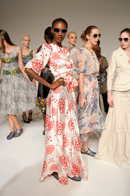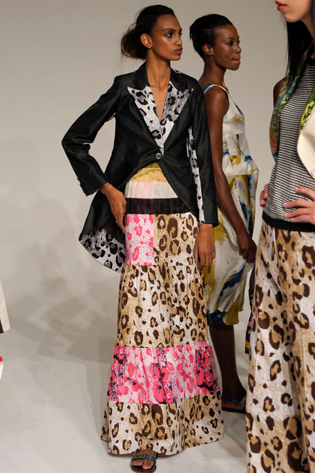 “Duro Olowu has the skill to take the bold pattern and color from his African heritage – but to use the shades and patterns to mix prints in a modern way. The effect of an old English rose floral, shown against a leopard print, was powerful and so was the idea of taking the same print in different colors and putting them together in one garment.
