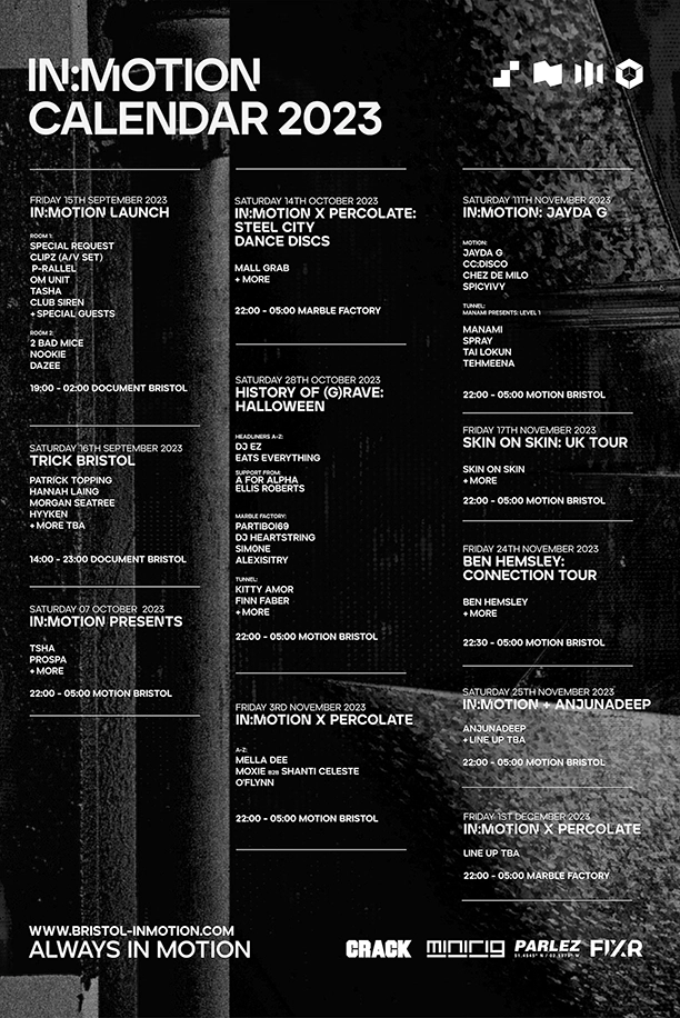 Motion – looking ahead to their Autumn and Winter event series, Bristol’s crown jewel club Motion relaunches their beloved event series In:Motion with huge lineups in tow.