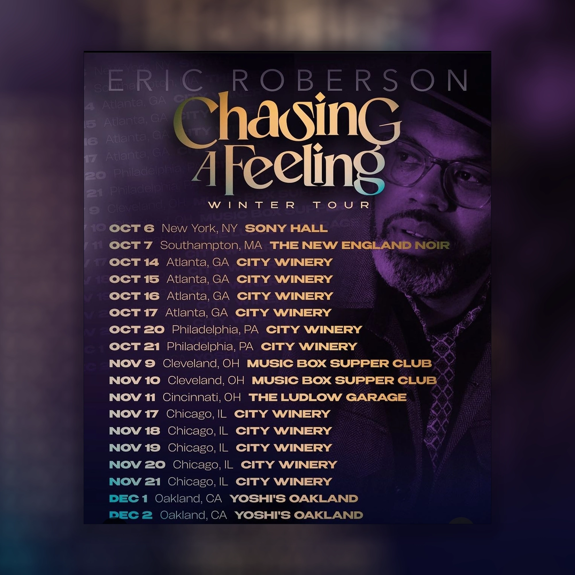 Eric Roberson kicks off his “Chasing A Feeling” Winter Tour in New York City at Sony Hall on October 6th. Tickets can be purchased at EricRobersonMusic.com.