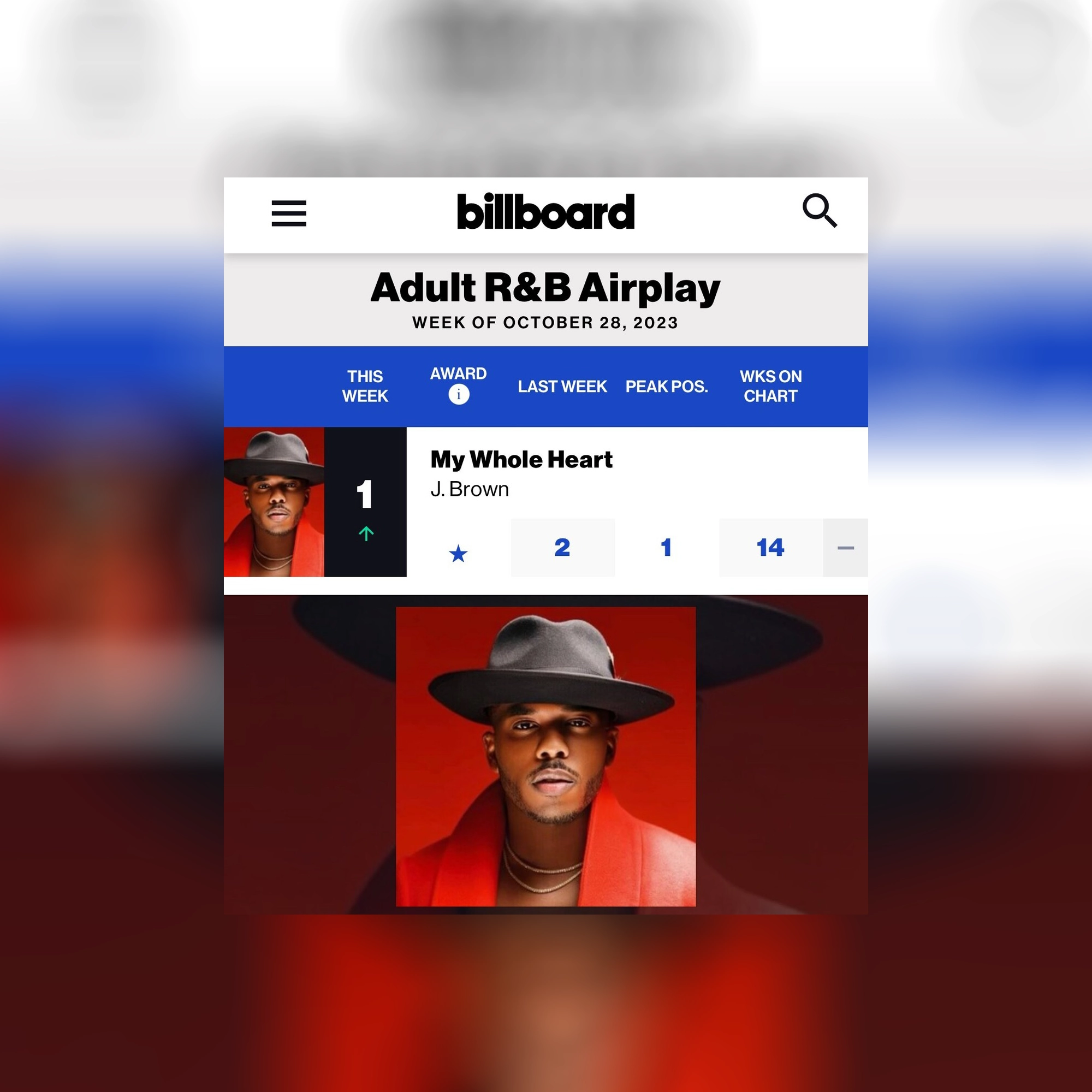 J Brown Secures The #1 Spot On Billboard R&B Charts With Smash Single, “My Whole Heart”